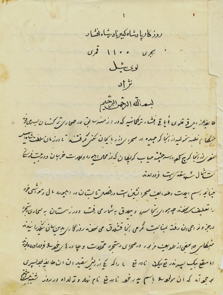 روزگار پادشاه کبیر نادر شاه افشار - جلد اول - 386 صفحه - پایان تالیف 1336 قمری (1296 خورشیدی)
